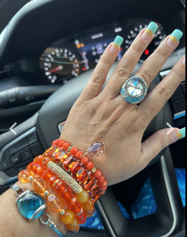 The bracelet has beautiful shades of deep orange. Very pretty.